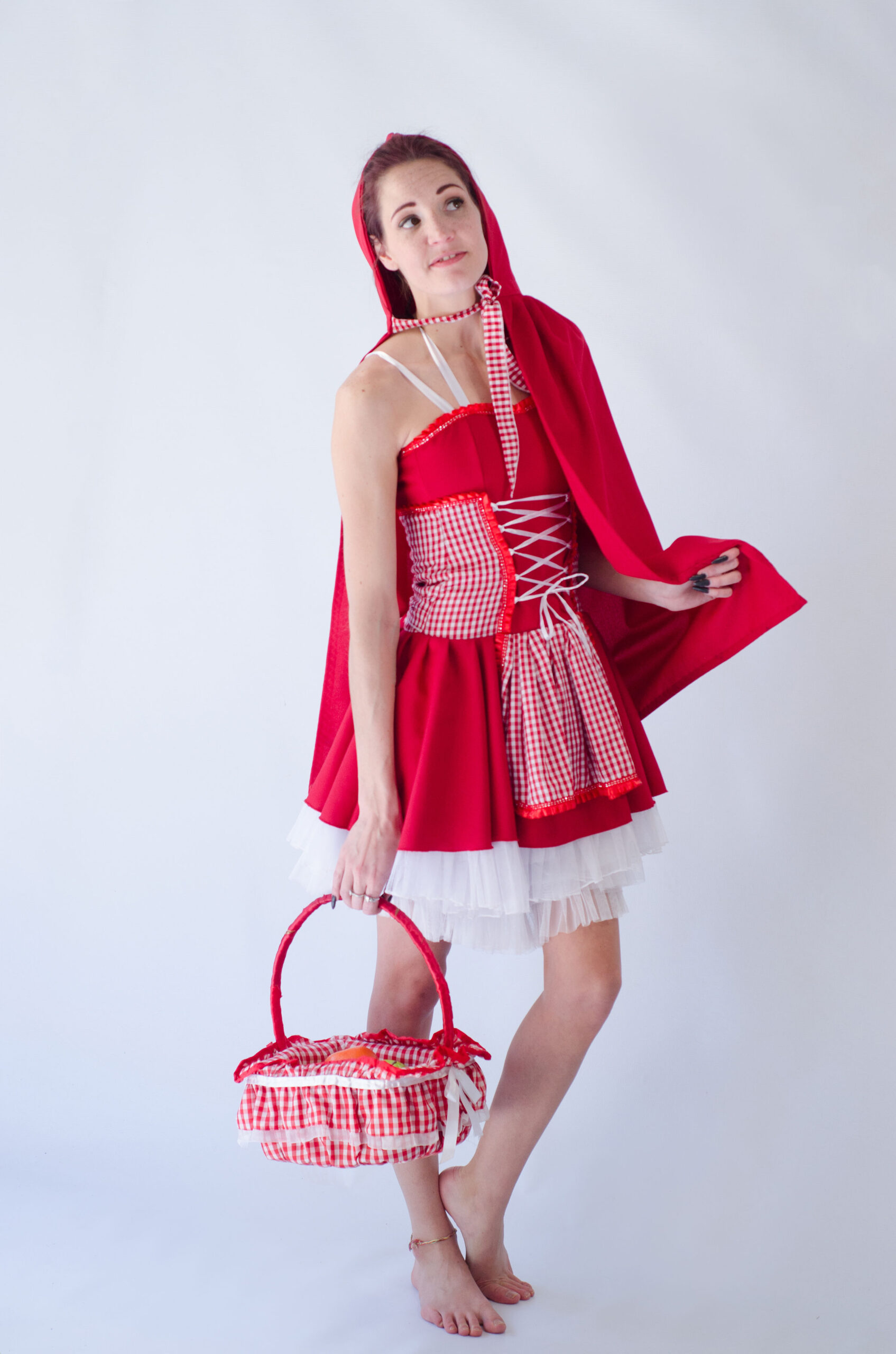 Little Red Riding Hood Dress, Cape & Basket Combo Adult